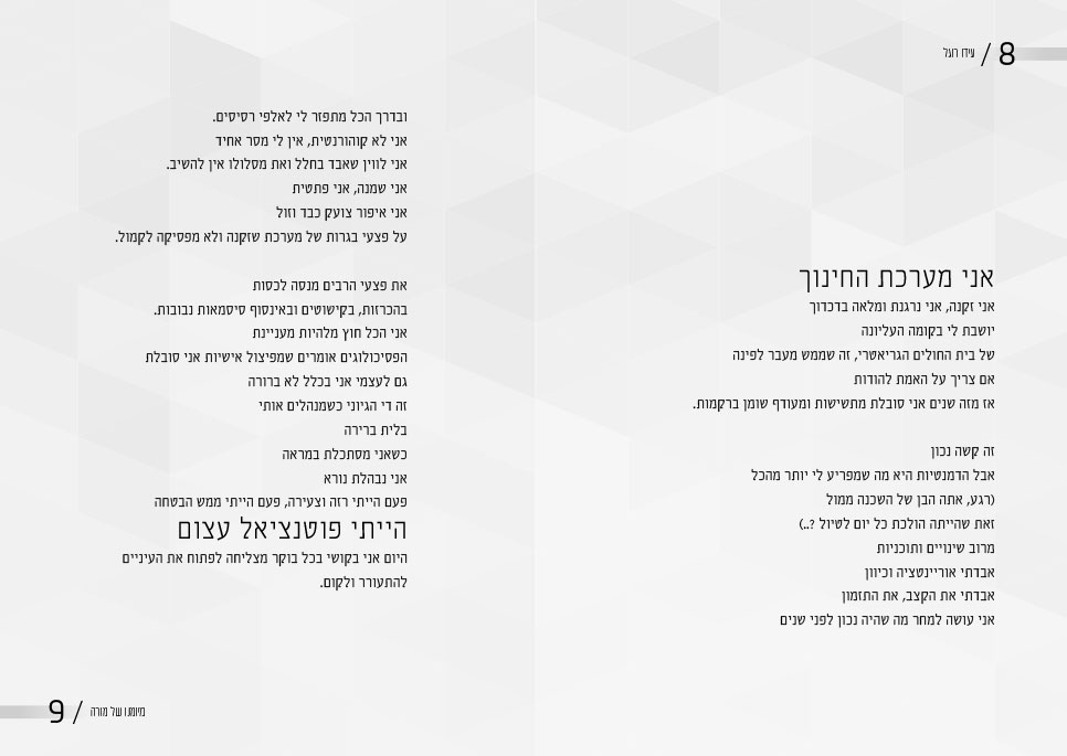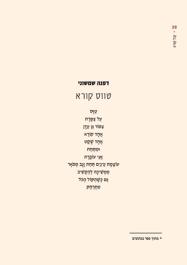 פרויקט שעשיתי עם טלי בלייכר המקסימה שמפעילה דף פייסבוק בשם ״קולות קוראים לכתיבה״