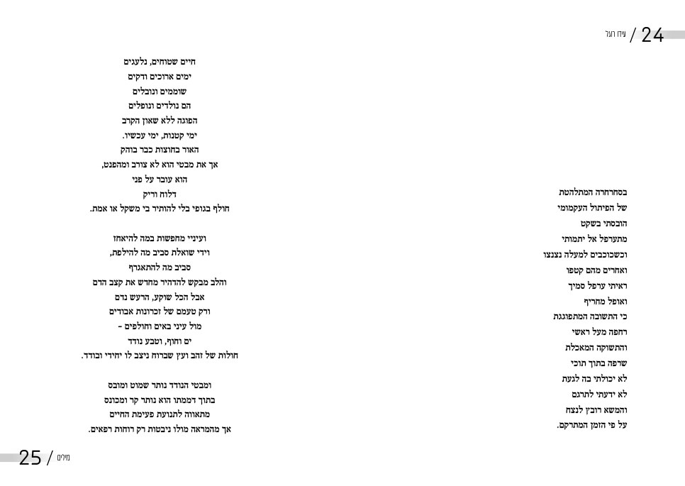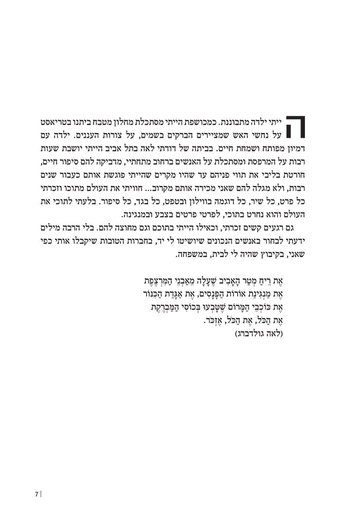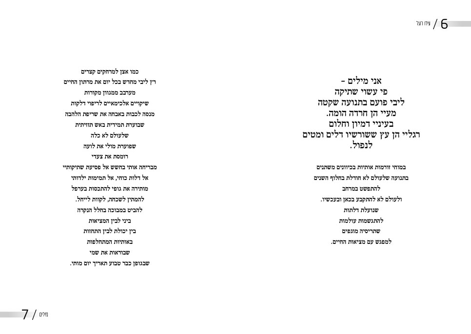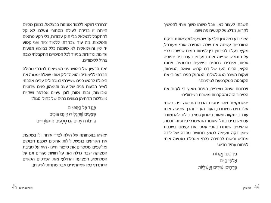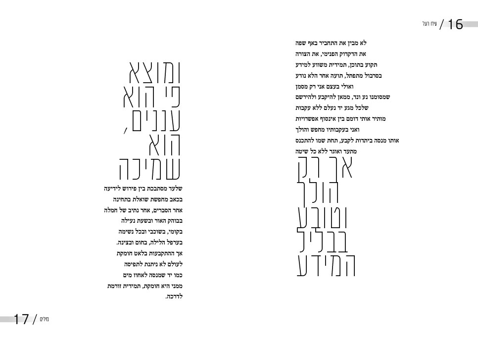 חגי כהן ואני עשינו כבר פרויקט קודם, עיצבתי עבורו כריכה לספר פרוזה שכתב ״מן הגורן ומשדה הקרב״. וכשהוא פנה אלי כדי שנכין יחד את ספר השירים שלו, שמחתי מאוד מאוד. בשילוב עם הציורים המקסימים שלאביבה אנטס יצא לנו ספר שירים/סיפורים קטן ומיוחד