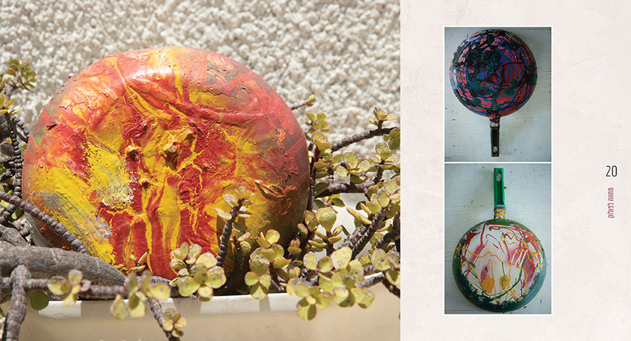 דורית רצתה לעשות תערוכה עם כל המחבתות המיוחדות שלה. אבל הקורונה דחתה את התערוכה. בנתיים יצאנו יחד למסע מקסים של מחבתות ואמנים שונים. ספר קטלוגי של צבעים והומור