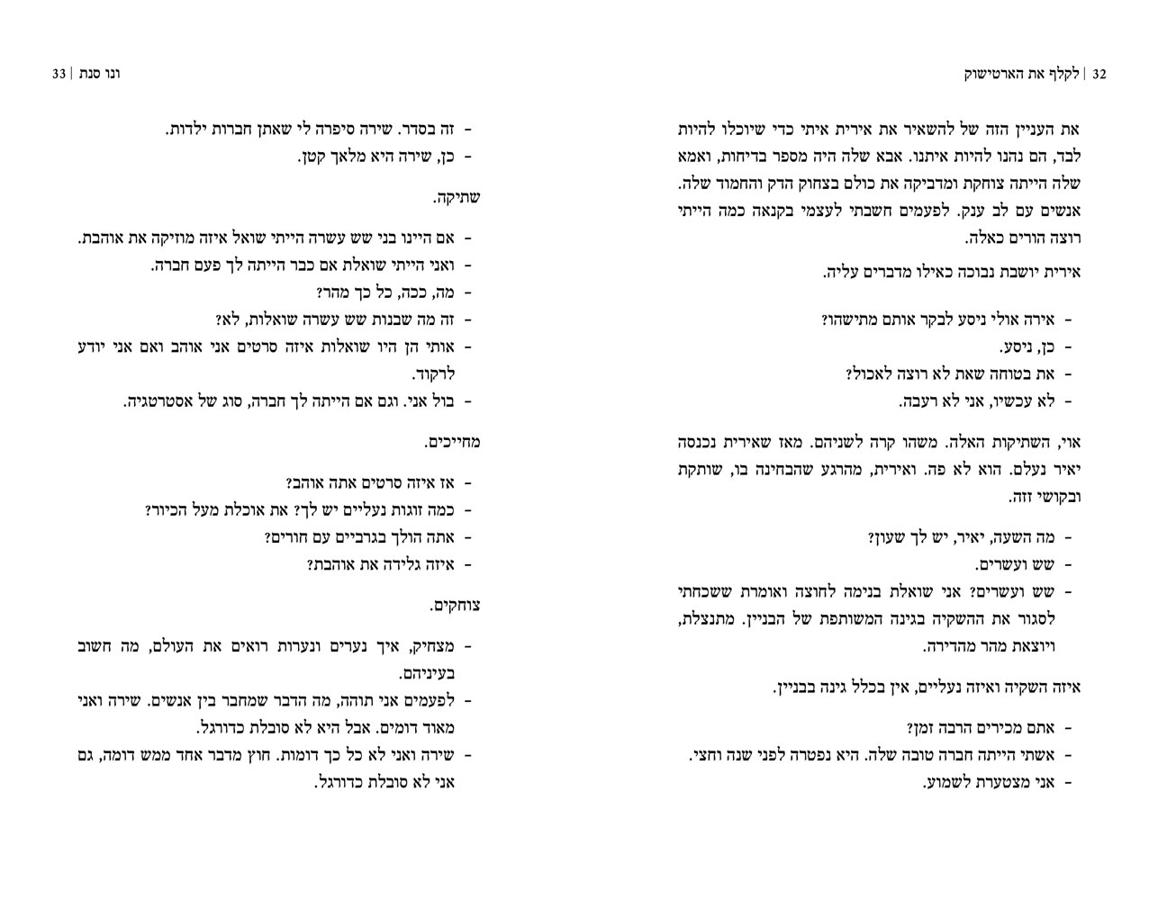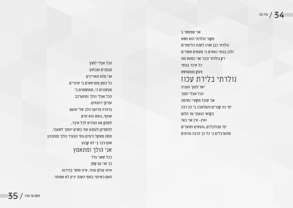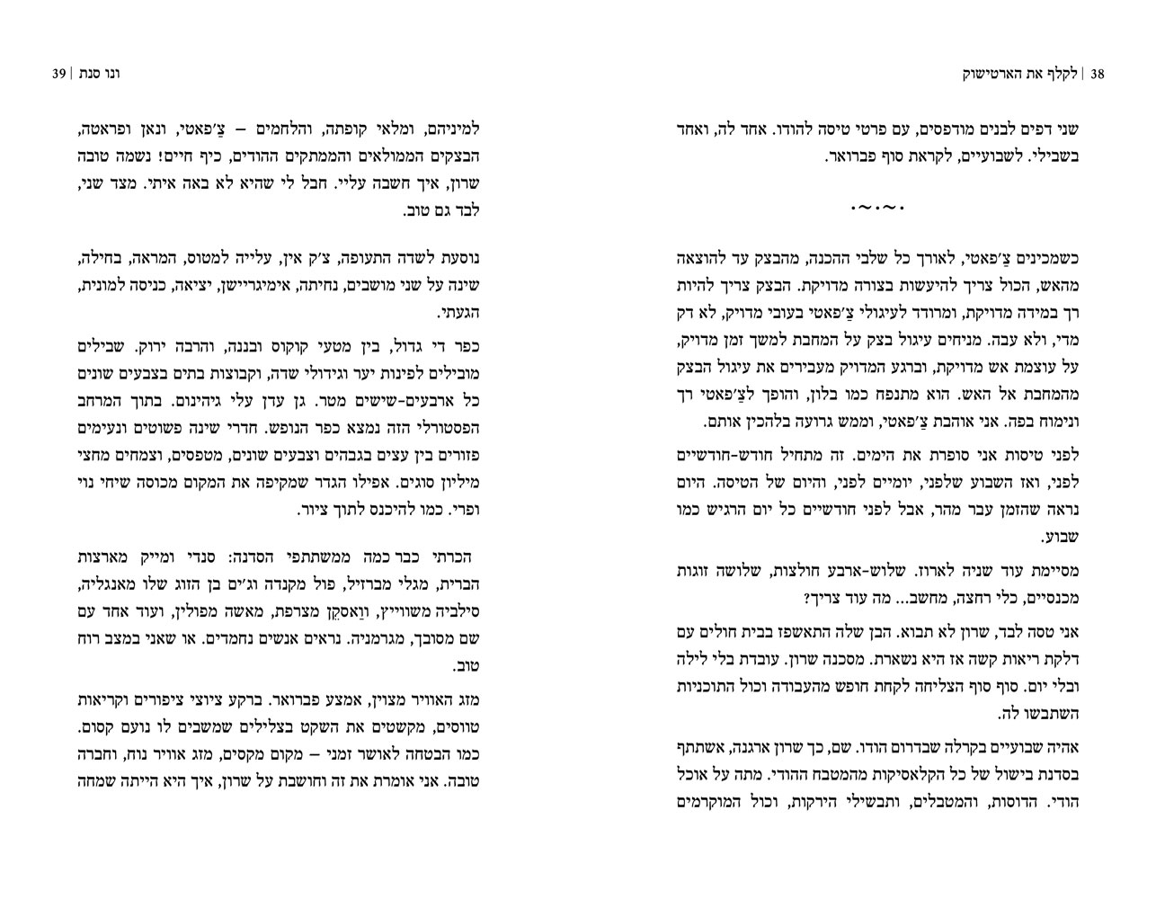 גם שמעמדים ספר פרוזה צריך וחשוב לשים לב לפרטים הקטנים. בספרה של ונו סנת היה חשוב למחברת להבליט דיאלוגים מסוימיים, לתת לספר מראה קצת שונה שיכוון ויצור אווירה שונה לקורא. עמלנו במשך שעות לתת את הריווחים הנכונים, לבחור את הדיאלוגים שיגרמו לקורא להרגיש שהוא בתוך השיחה. חשוב לזכור שבעימוד ספרים העיצוב חייב לשרת את התוכן. ולעניות דעתי, הצלחנו כאן להעביר את התוכן כפי שרצתה ונו. ומבחינת התוכן? מומלץ ביותר